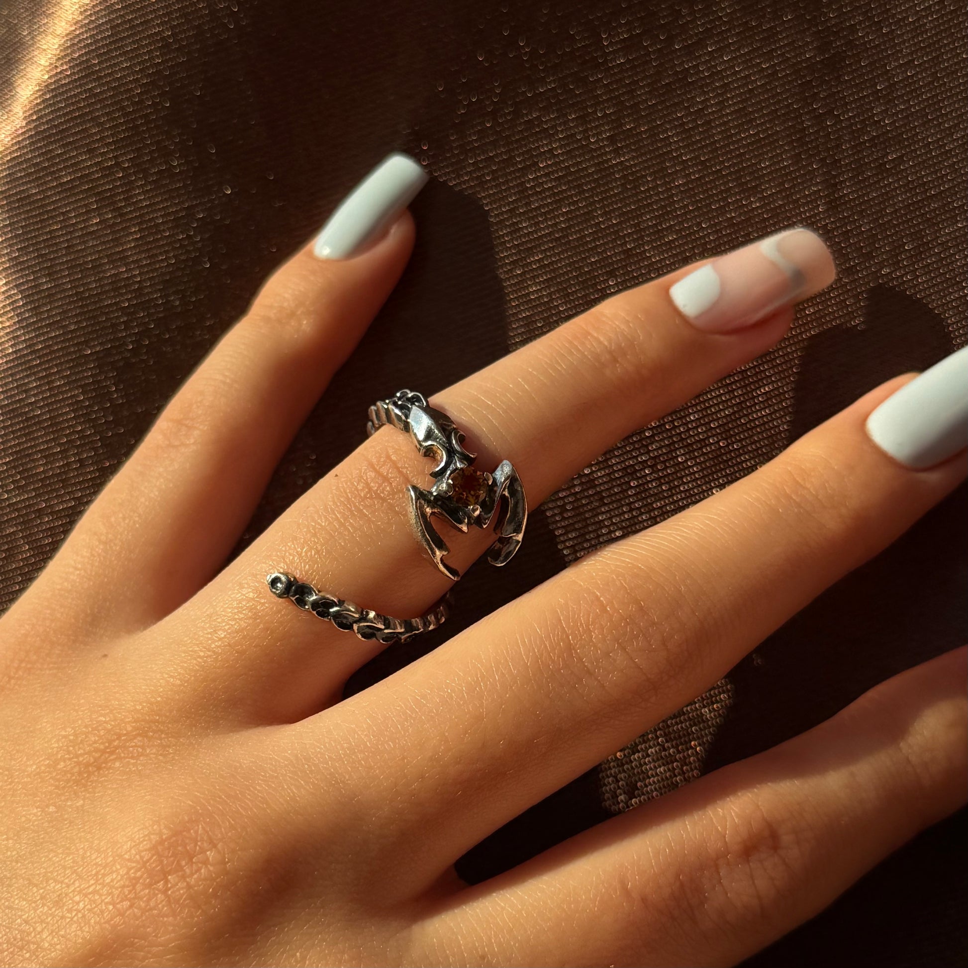 Adjustable handmade silver ring with a bold claw-inspired design, set with a cubic zirconia stone. Unique and edgy, this ring combines craftsmanship with comfort — thanks to its open size design, it fits most fingers. A striking accessory for those who love to stand out.