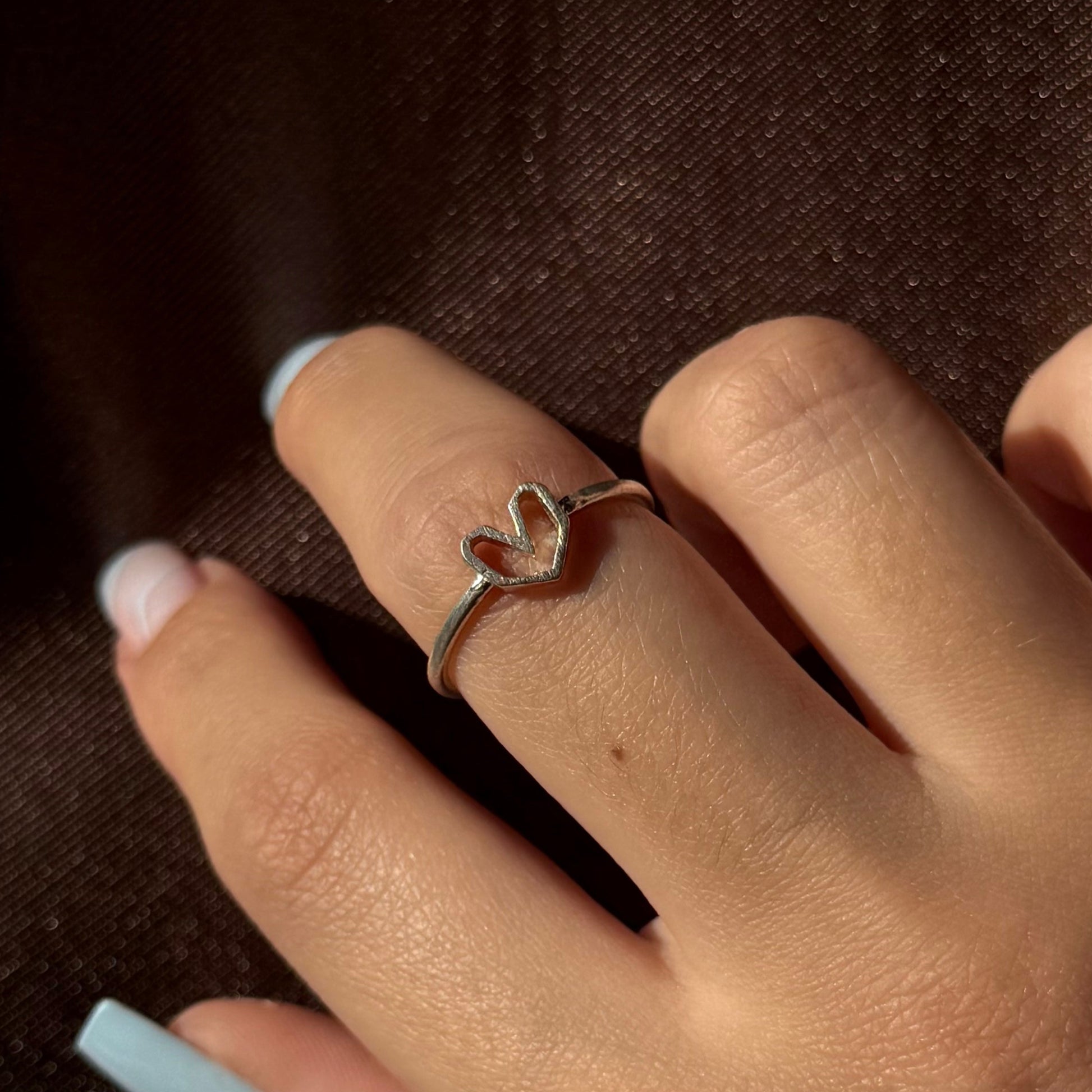 A charming handcrafted silver ring with an open, adjustable design, making it easy to fit any finger. At the center lies a delicate heart — a timeless symbol of tenderness and love. Lightweight and elegant, this ring adds a romantic touch to any outfit and highlights the gentle nature of its wearer.