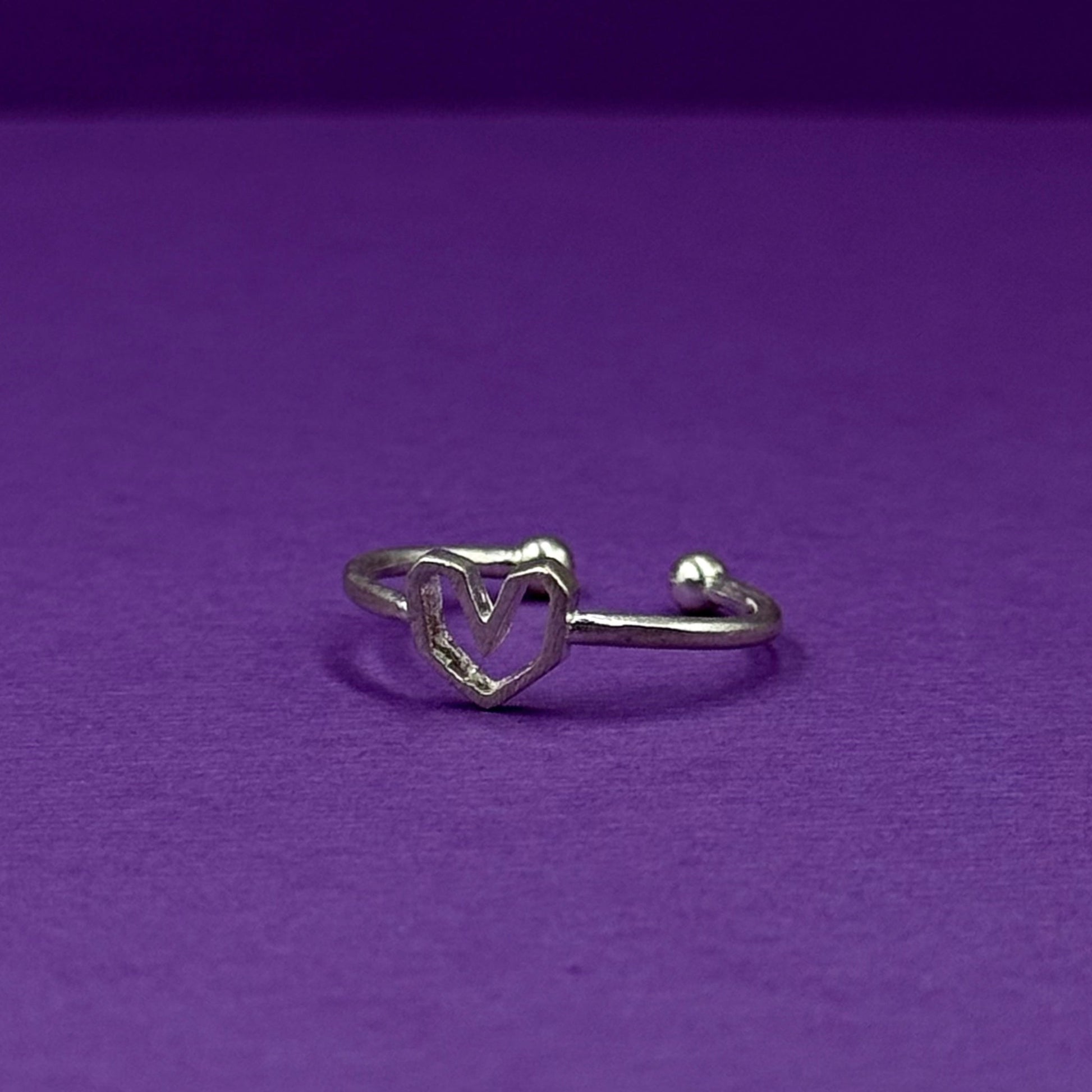Adjustable silver ring with a heart design