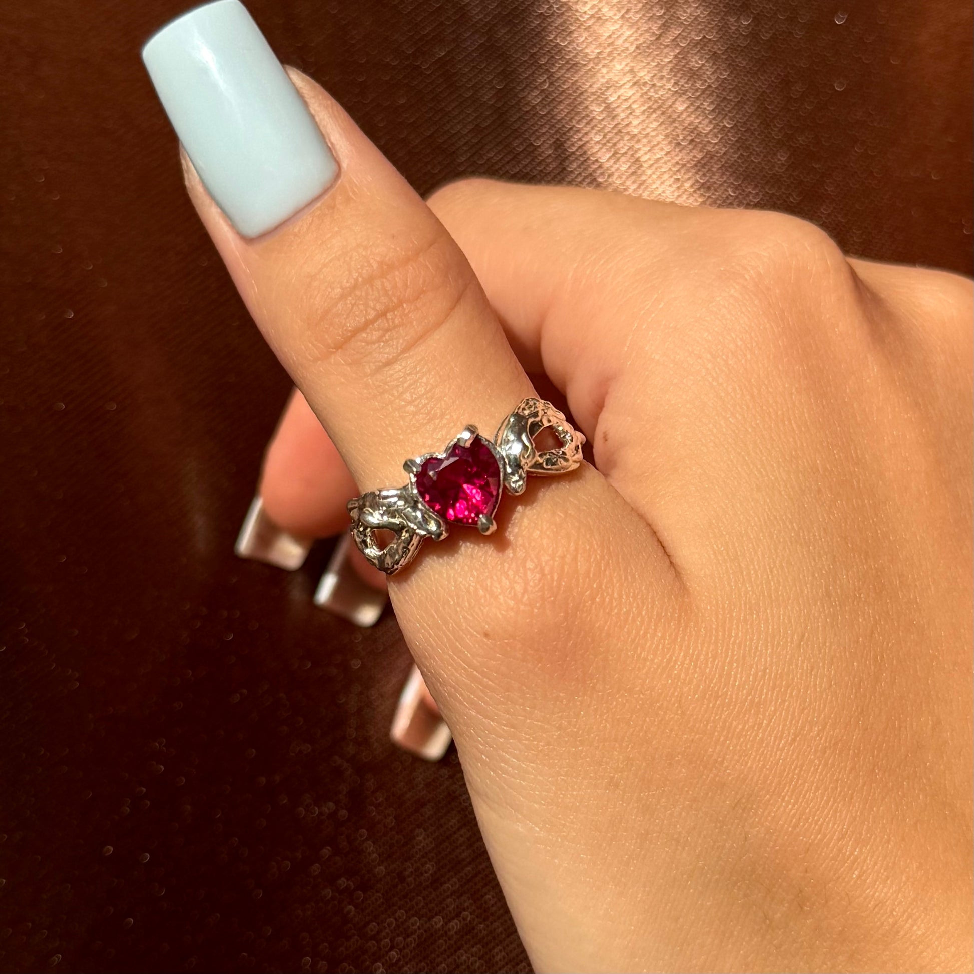 Handmade silver ring with a heart-shaped cubic zirconia stone. The bold setting with unique side details gives this romantic design a modern, edgy twist. Crafted by hand, each ring is one of a kind — a perfect statement of love and individuality.