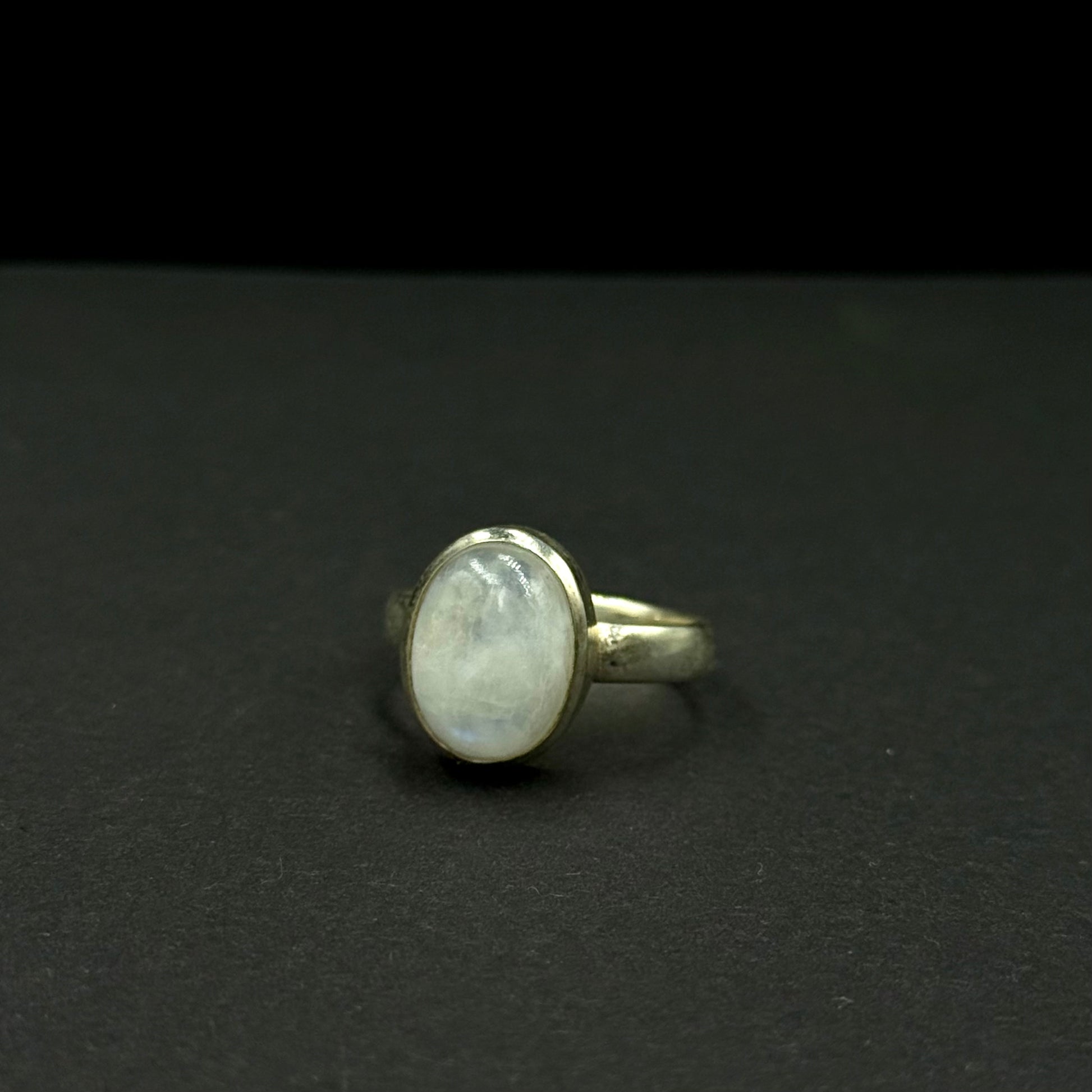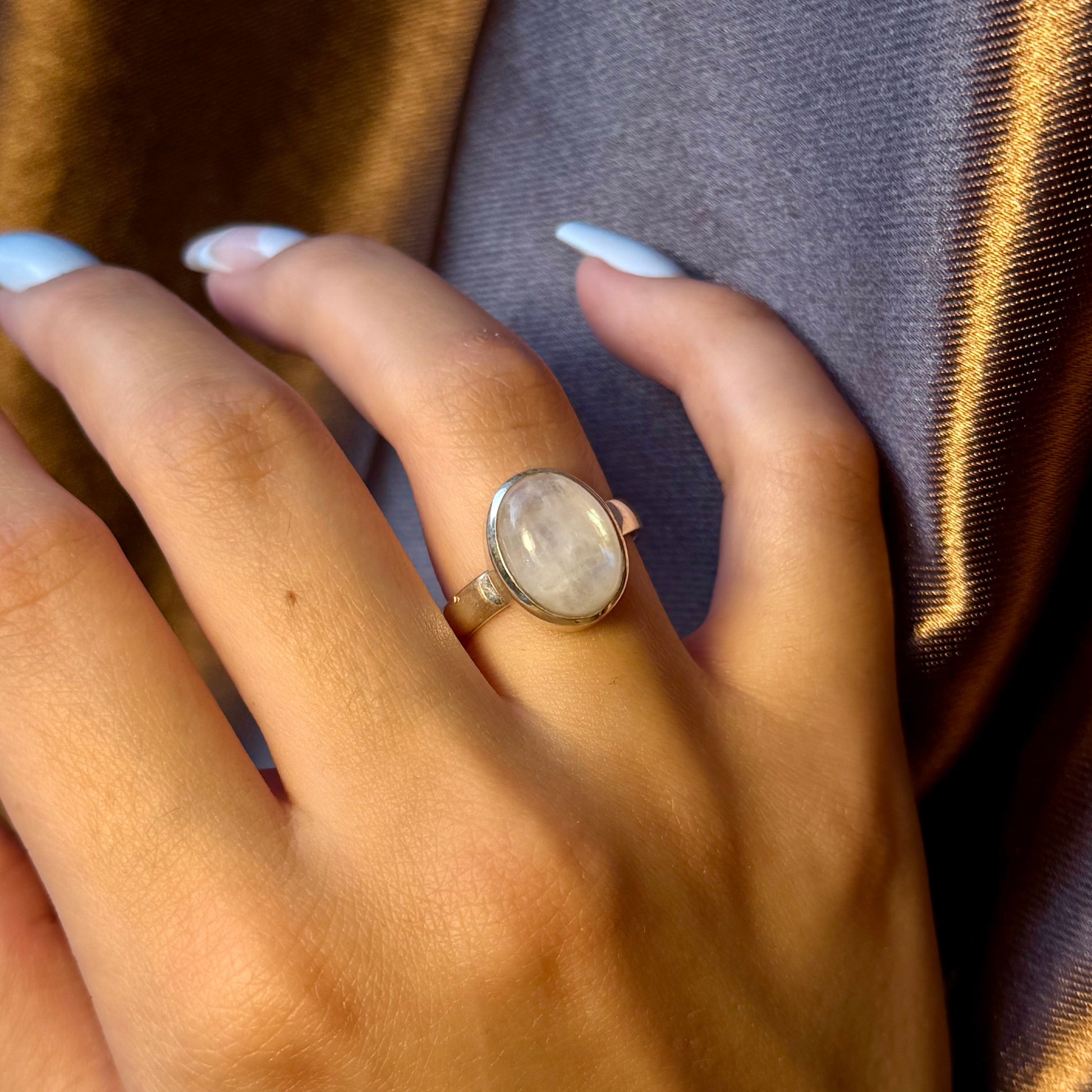 Handmade silver ring with a natural moonstone. Known for its mystical glow and calming energy, moonstone is often called the “stone of intuition” and “stone of femininity.” Each ring is individually crafted by hand, making it unique and truly one of a kind.