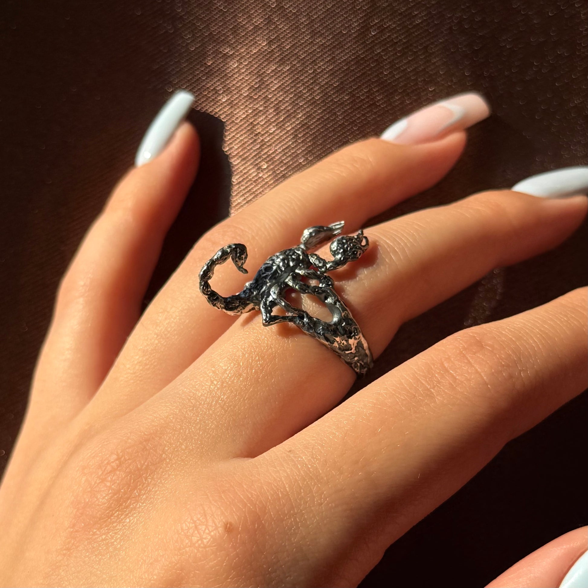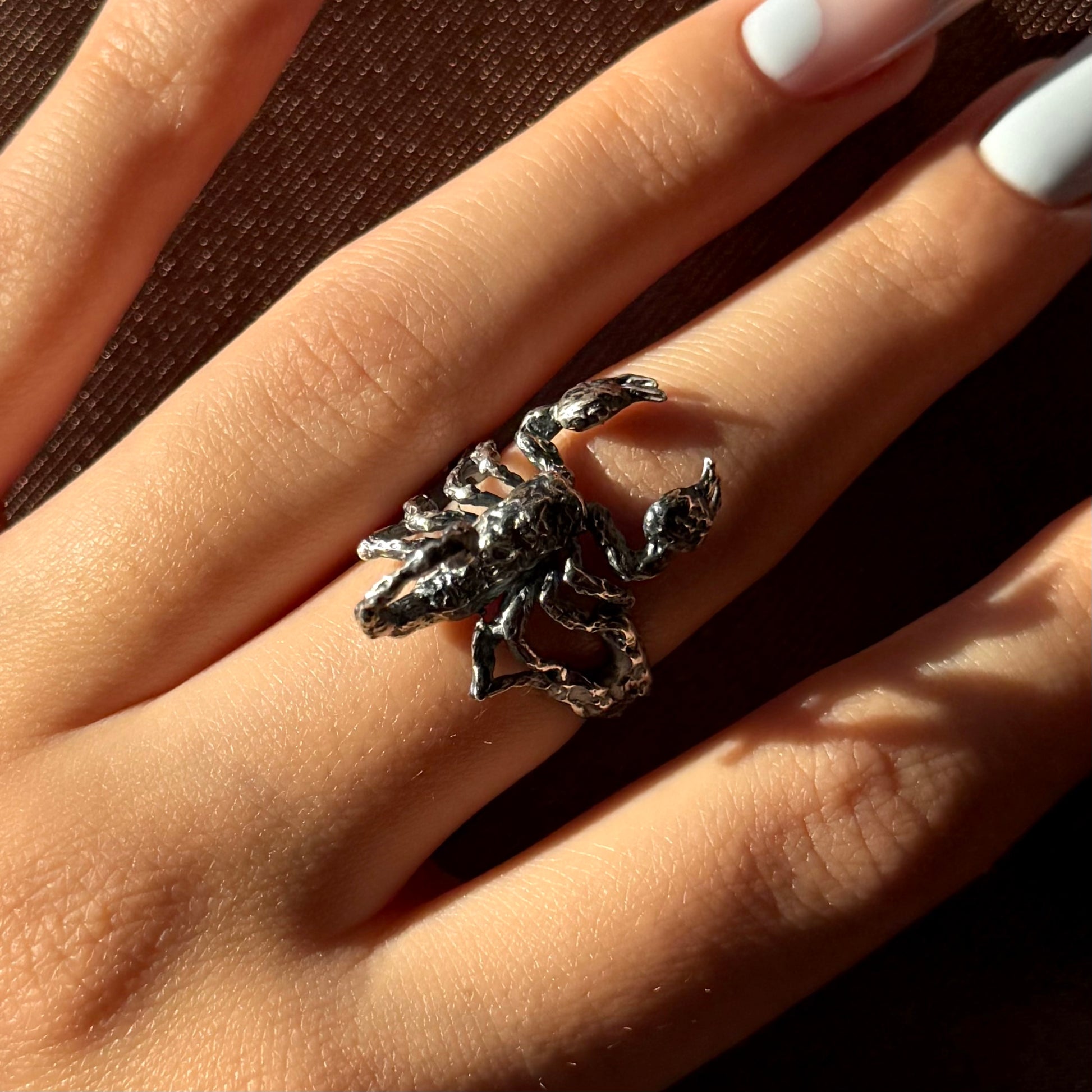 Handmade silver ring in the shape of a scorpion — a powerful symbol of strength, resilience, and mystery. Every detail is carefully crafted by hand, making this statement piece truly unique. Bold jewelry for those who dare to stand out.